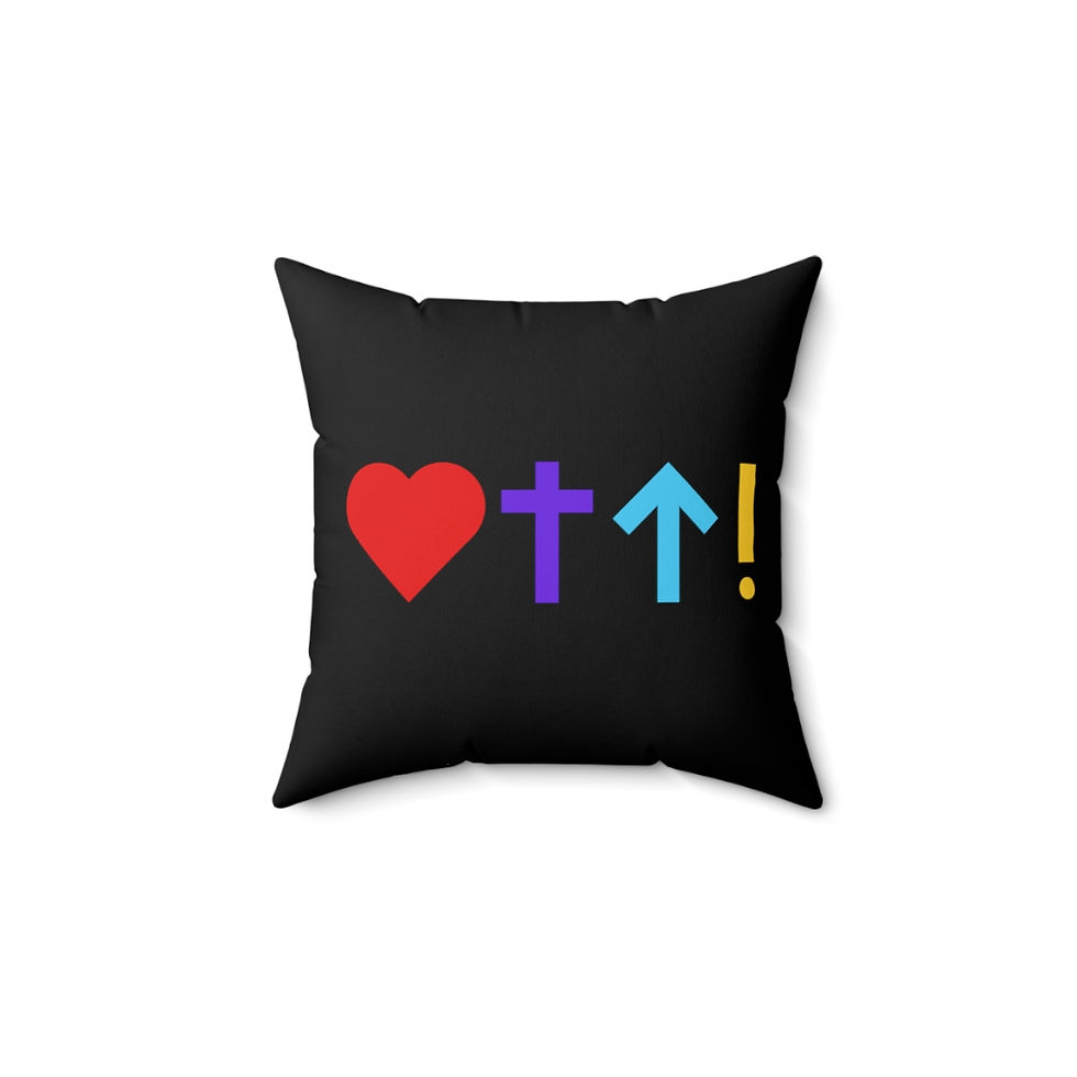 Symbol Gospel came from a vision - a simple graphic that describes the Gospel of Jesus. The heart is God's love, coming to earth as Jesus, and red for His blood - the cross, where He paid for our sins, is purple for the robe they placed on him as royalty - the sky blue arrow pointing up towards Heaven, where He was raised, and the gold exclamation point as our mission to proclaim our faith - which is "of greater worth than gold". The idea is for this graphic to be a means to start a conversation - a way to explain the Gospel to those who don't know it, and to show your faith in a new, graphic way. All profits from sales of these items go towards missions teams and organizations that also proclaim the Gospel - so we spread the Word, and then use any profits to help others spread the Word - it's a win win. :-)